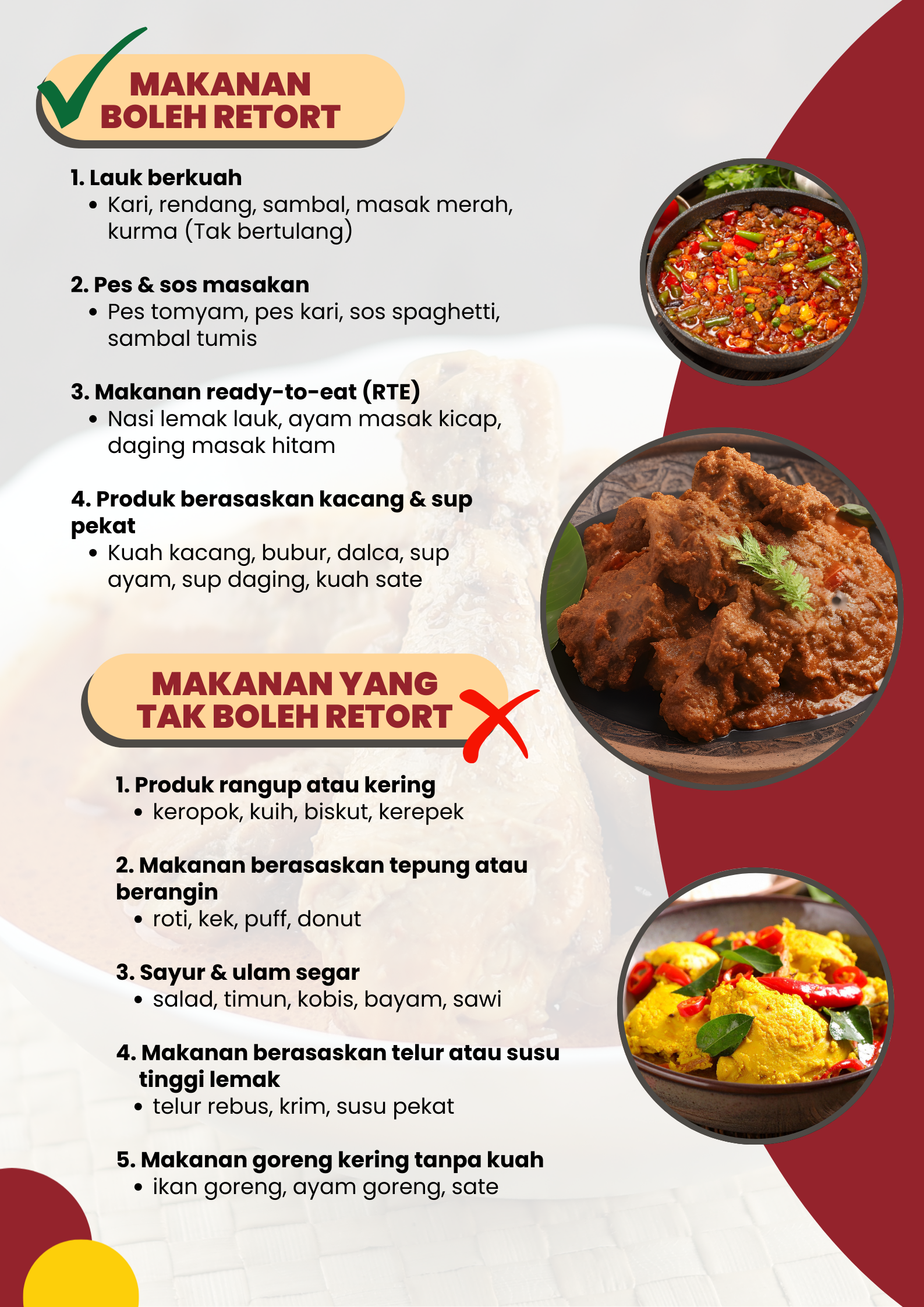 Kami membantu usahawan makanan menghasilkan produk tahan lama melalui proses retort profesional yang memastikan keselamatan makanan, kualiti terpelihara, dan jangka hayat lebih panjang dan tanpa bahan pengawet.